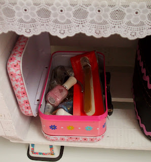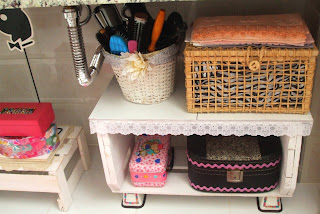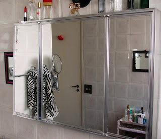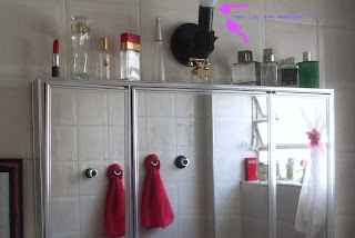 Esse armárinho antiguinho ai embaixo quase joguei fora ha alguns anos atrás. Felizmente conservei-o porque agora depois da reforma ele ajuda a guardar mais outro tanto de coisas, inclusive as do maridão. No futuro vou tirar esse spot feio que esta ai e colocar iluminação de camarim - vai ficar retrô e um verdadeiro banheiro de mulherzinha.